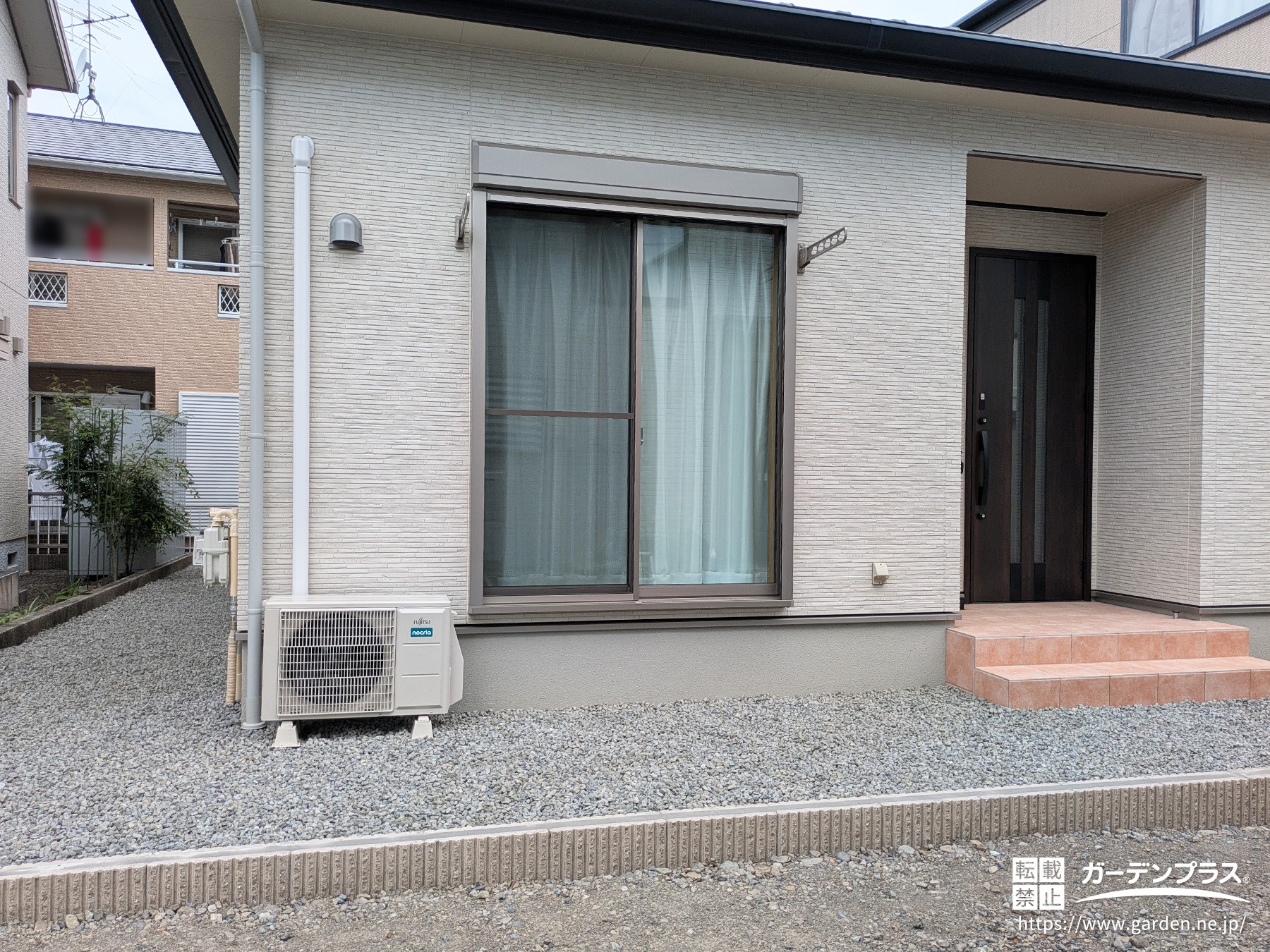 砂利を敷くことで雑草を抑制し、排水性も良く、歩くたびに生まれるシャリっとした心地よい音が防犯効果もプラスします。