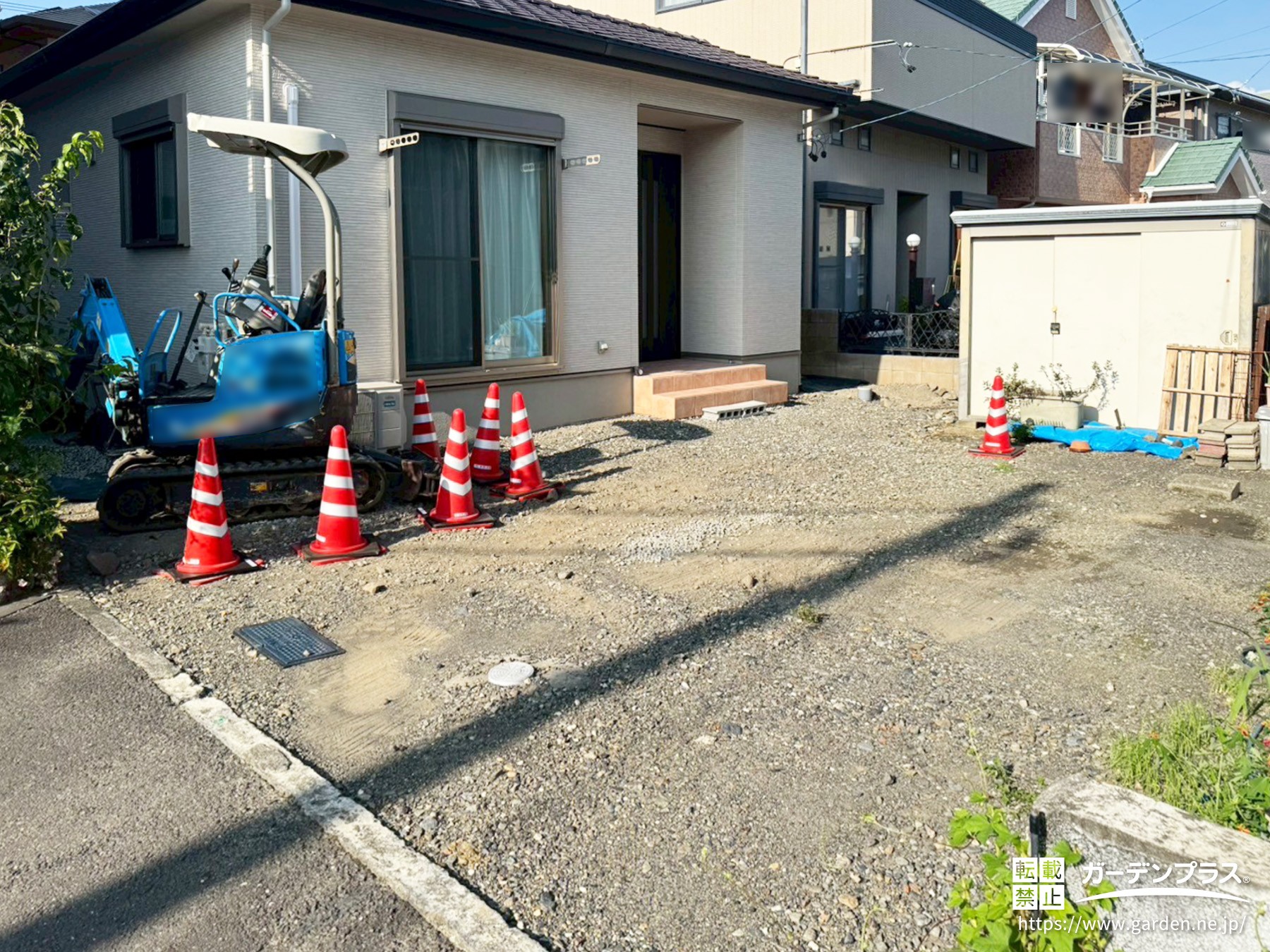 こちらは外構工事の初期段階、鋤取り(すきとり)の様子です。