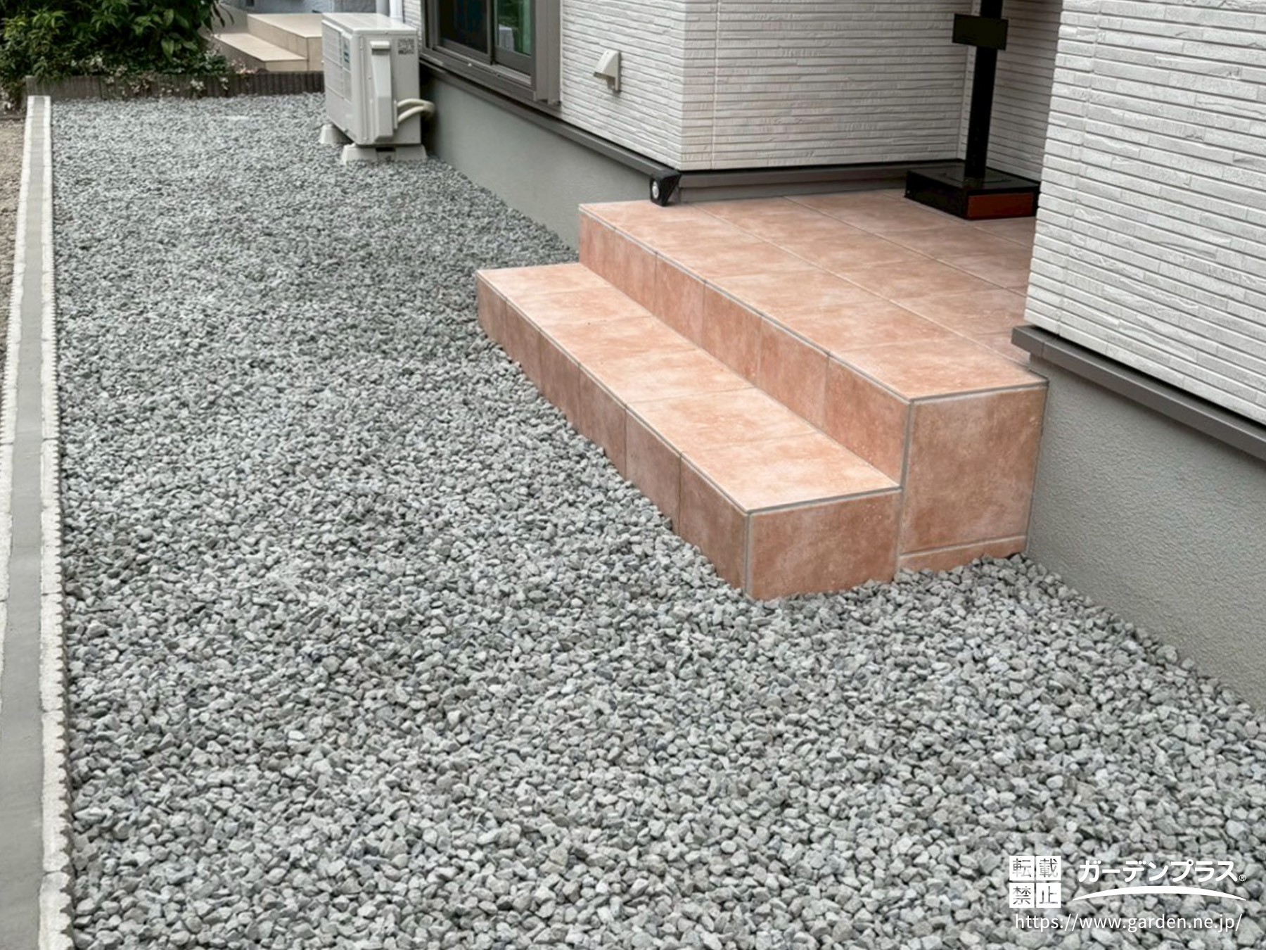 砂利は5号砕石を使用し、やや大粒で存在感のある仕上がりにしました。
