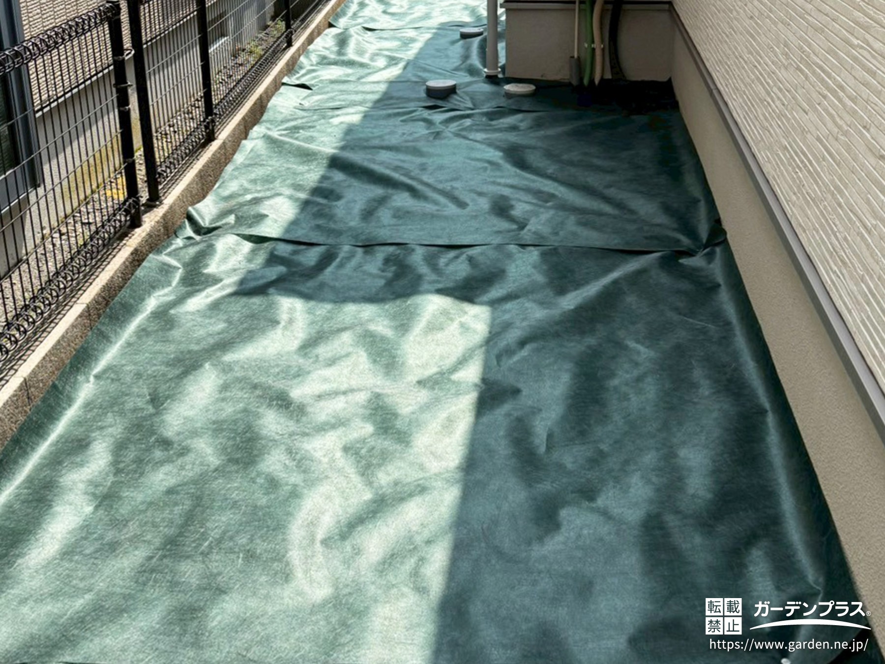 施工中のお庭(防草シート敷設)