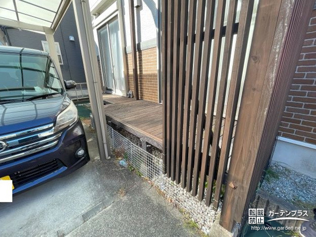 駐車スペースに停めた車から荷物を降ろす時やお庭への出入りに便利に使われていたそうですが、こちらも天然木のため老朽化していました。