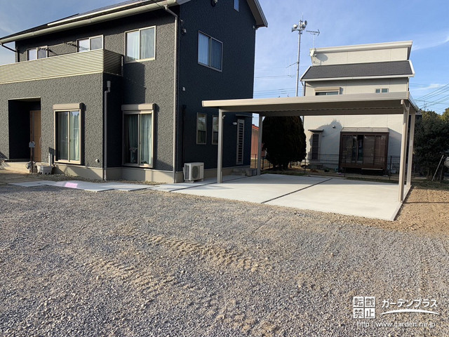 新築時に玄関アプローチは施工済みでしたので、今回設置するカーポートとをつなぐ導線を確保するために、新規で土間コンクリートを打設致しました。