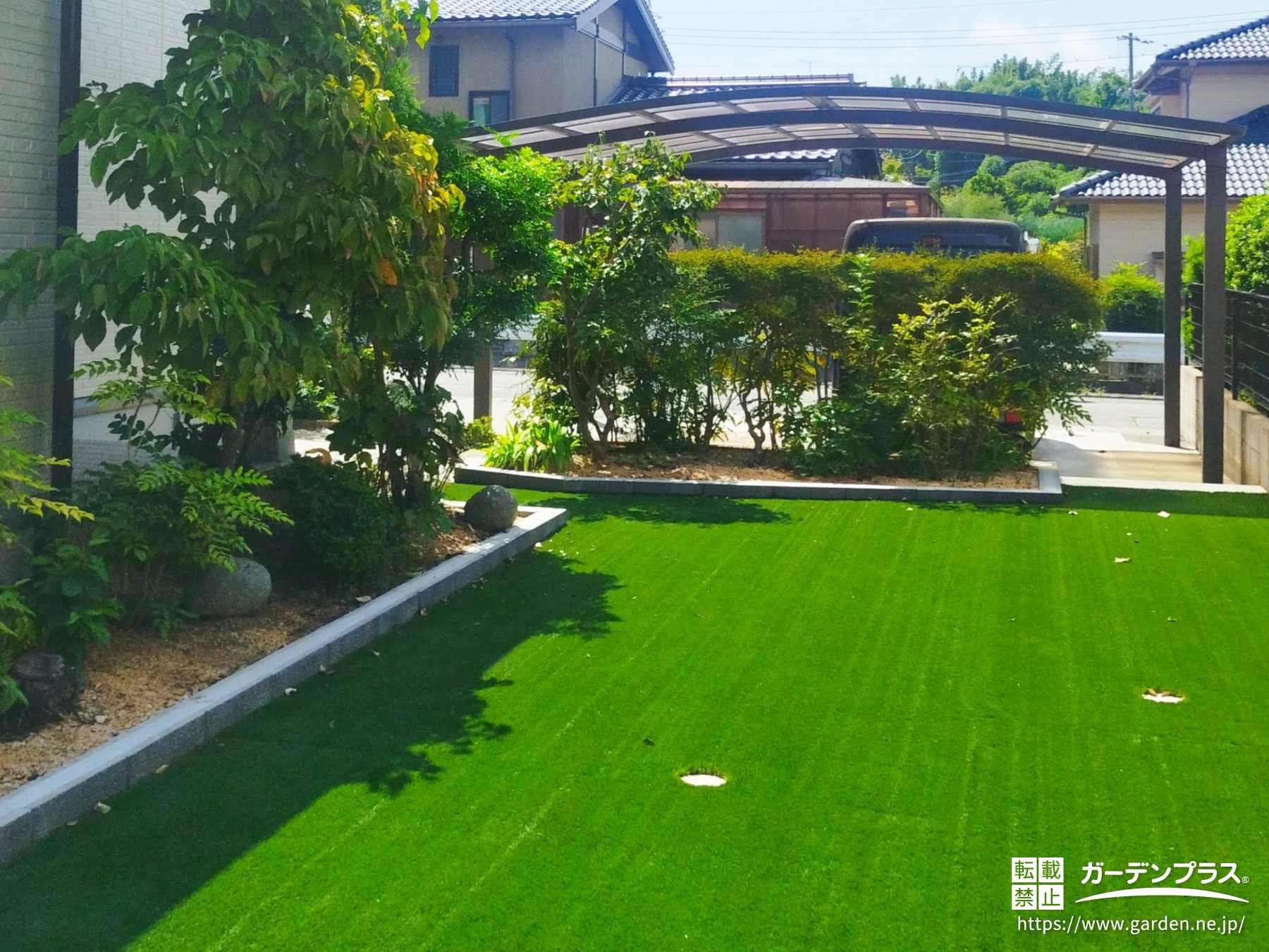 メリット:初期費用を抑えやすく、見た目も踏み心地も自然な仕上がりになるため、お庭で過ごすワンちゃんにとって心地よい環境です。土を掘ってしまっても芝は再び広がりやすく、築山をつくるなど自由なアレンジができるのも魅力。四季の移ろいを感じられる点も、お庭づくりを楽しみたい方に向いています。
