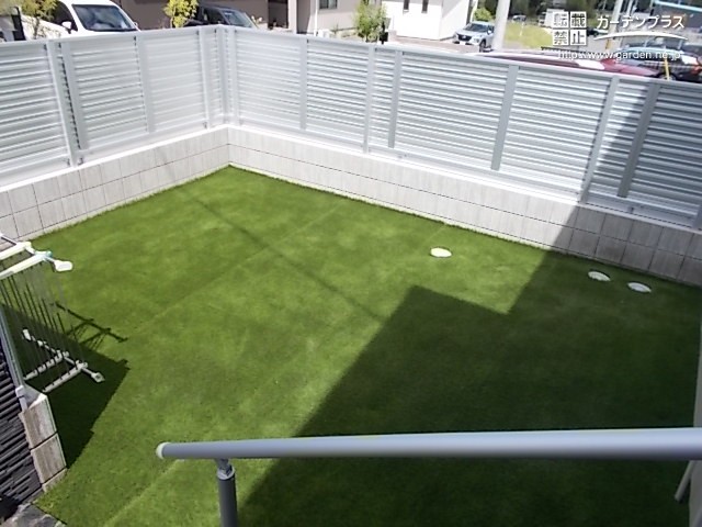 また、お子様が安全に遊べる空間を重視し、真砂土と防草シートで下地を整え、人工芝(芝丈40mm)を敷設しています。