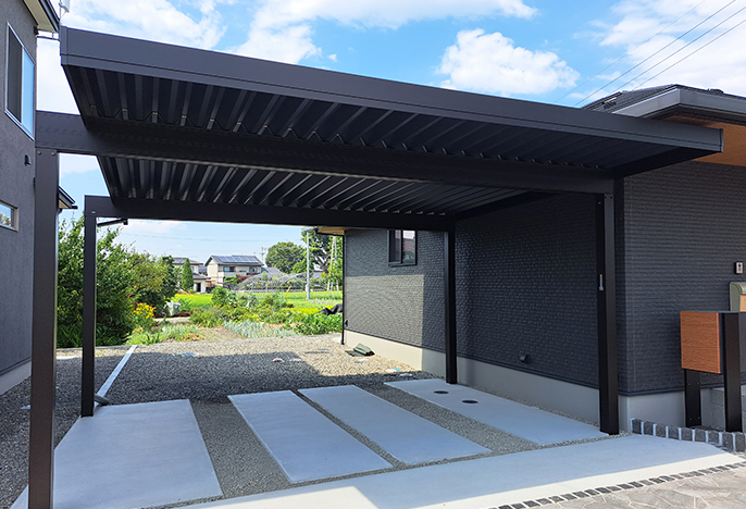 高い耐久性と引き換えに、一般的なポリカーボネート屋根のカーポートと比較すると、価格は高い傾向にありますが、安心感のあるカーポートです。