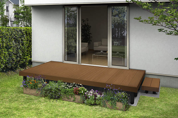 コストパフォーマンスに優れた人工木ウッドデッキは、ウッドデッキを初めて設置する方や広さが欲しい方にもおすすめです。