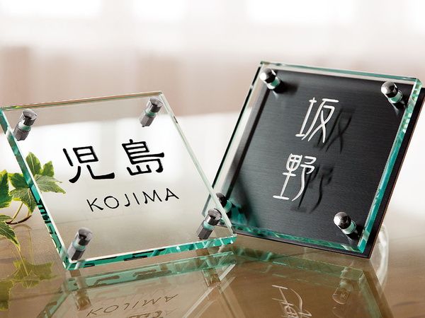 澄み切った透明感と光の輝きが魅力のガラス表札「クリアーガラス」。