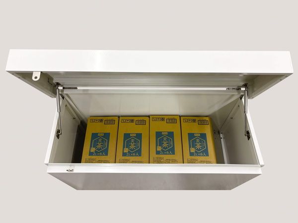 市販の南京錠を取り付けることで、防犯性を高めることも可能です。また、置き配スペースとしても活用できるため、留守中の荷物受け取りにもお使いいただけます。