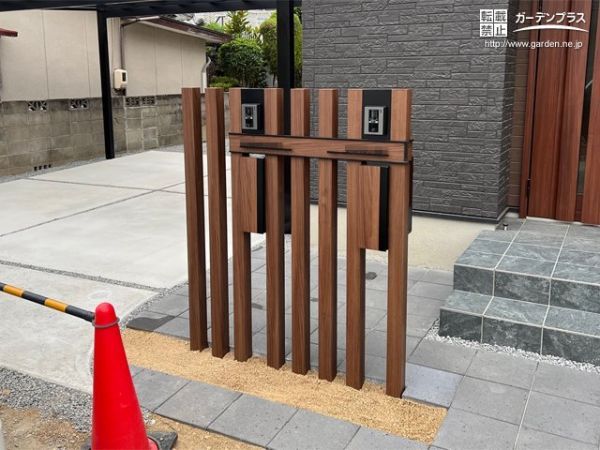 2つの細い柱で幅も最小限に抑えた機能門柱
