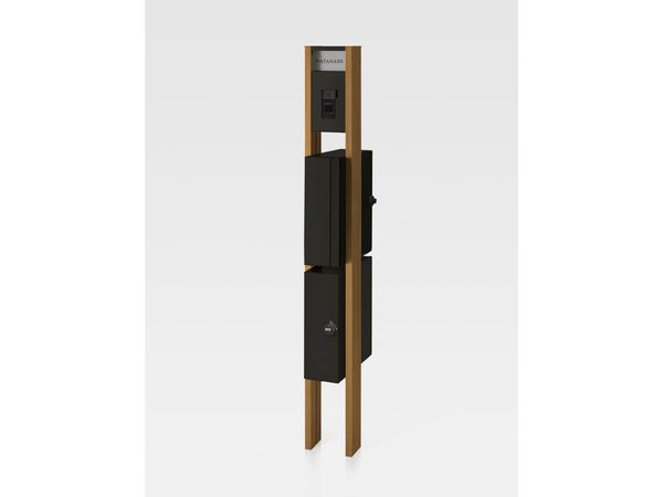 LIXIL定番のポール型機能門柱「アクシィ」2型は、2本柱にサイン、インターホン、縦型ポストをはさんだスタイリッシュなデザインで、柱には木調カラーも選べるおすすめの門柱です。さらに、便利な宅配ボックス付き仕様もご用意。カラーはシャイングレー、ブラック、オータムブラウンの3色をラインアップ。既存の機能門柱にも後付け可能なため、必要になったときに追加しやすいのも魅力です。