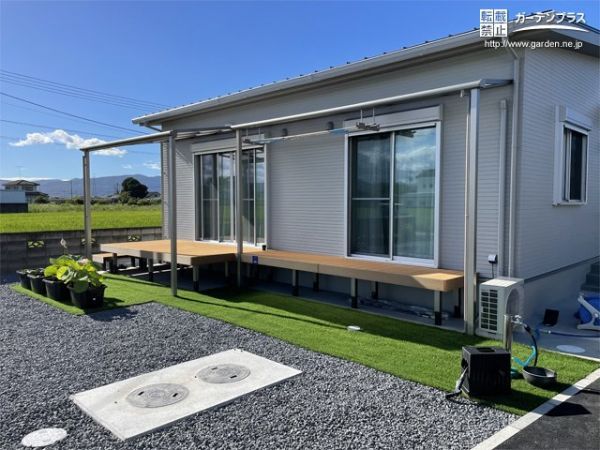床板・幕板/人工木材(木材・プラスチック再生複合材)、基礎部材(束柱・大引)アルミ形材 |