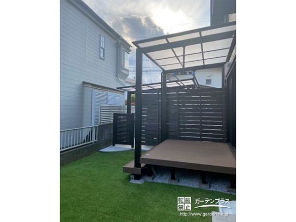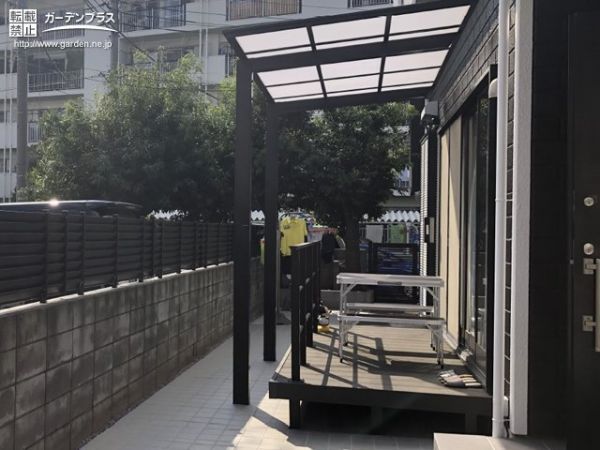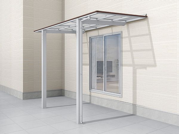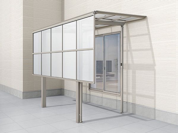 カーポートとしてお馴染みの「フーゴF」シリーズのテラス屋根サイズです。カーポートやサイクルポートのように屋根と柱だけで独立させることができるので、新築のお住まいの外壁も傷つけずに設置可能。