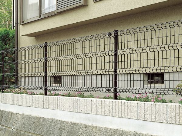 風通しや採光性が良く、強くて軽いスチール製のメッシュフェンスです。犬走りなどの隣家との仕切りだけでなく、植栽の多いお庭にもおすすめ。風圧の強い高い場所や擁壁の上にもおすすめです。「グリッドフェンスR型」は半円形のふくらみが1枚の中に4段あるのが特徴で、凹凸のあるデザインとなります。