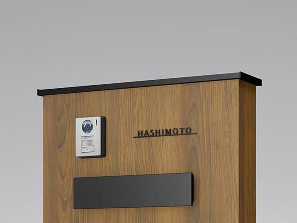 「本体」「フレーム」「ポスト」「表札」を組み合わせるウォールタイプの機能門柱。最も印象的な本体パネルには、一枚板のような木目調デザインから、石調、金属色まで表情豊かなテクスチャを取り揃えました。またフレームも通常の笠木タイプの他に、三面囲いタイプやフレームのようなロングタイプなど個性的なシルエットもあります。存在感のある幅広タイプだからこそ、ディテールと質感にこだわった機能門柱です。