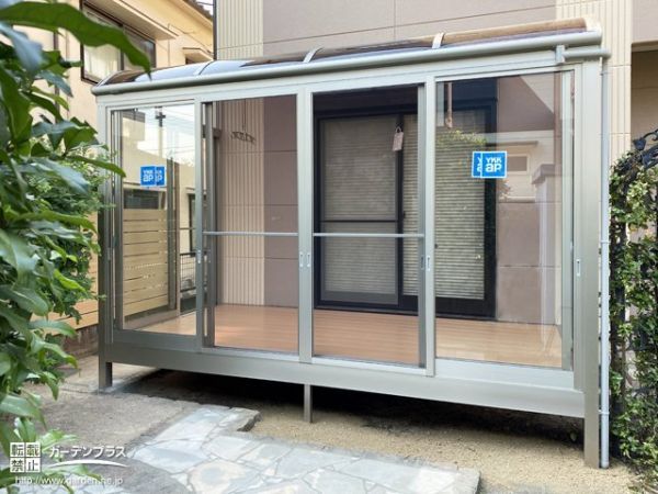 YKKAPのスタンダードなテラス屋根「ソラリア」の側面にパネルや引き戸を設置したテラス囲いタイプです。サイズバリエーションやオプションが豊富なため、犬走りから主庭まで、特殊条件のお庭にも対応できます。