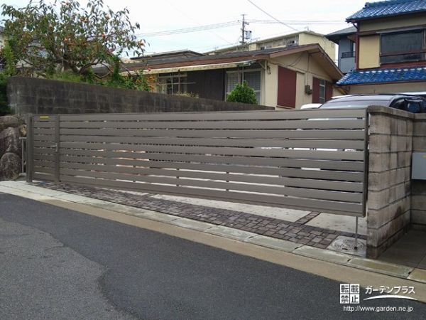伸縮門扉よりも高級感のある跳ね上げ式門扉「オーバードア/ワイドオーバードア」シリーズ。ガーデンプラスでもよくご依頼いただくアップゲートです。下桟、框が主張しないスマートなデザインで、建物とのトータルコーディネートを実現できます。S5型は幅の広い横板を使ったデザインで、閉じているときは目隠しフェンスのような印象に。木目調カラーとのツートン配色もバリエーション豊富です。