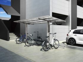 スタイリッシュなデザインで人気の「カーポートSC」シリーズから、駐輪スペースに対応したミニサイズが出ました。幅がたっぷりあり、奥行の大きいタイプもラインナップされていますので、実は小型のカーポートや独立式のテラス屋根として使われる方も多く、汎用的なエクステリアです。カラーバリエーションやオプションは、従来のカーポートSCシリーズと同じなので、お揃いし外構デザインに統一感をもたらすこともできます。
