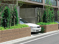 • 奥行きを演出する重ね塀が目を引くナチュラルモダンな新築外構