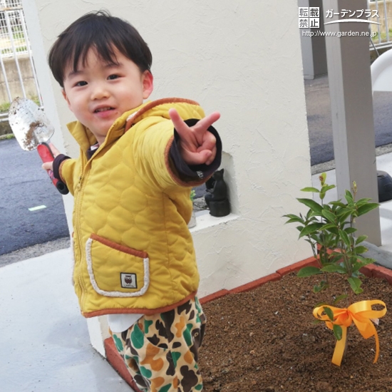 この度はプラントプランにご参加いただき、誠にありがとうございます。アクロバティックな植樹姿がかっこいいお写真ですね!お選びいただいた樹木は、一年を通して変化のある樹木ですのでお庭の彩りとしてピッタリ。四季咲きモクセイは一年に何度も白くてかわいらしいお花が楽しめ、紅葉トキワマンサクは春にリボン状のお花と秋には紅葉が楽しめます。もうすぐどちらも開花時期。春が待ち遠しいですね。記念樹と共にお子さまが健やかにご成長されますことを、従業員一同心よりお祈り申し上げます。