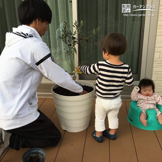 この度はプラントプランにご参加いただき、誠にありがとうございます。素敵なご家族のお写真、嬉しく思います。オリーブの木に小さな実がたくさんついていますね。オリーブの品種にもよりますが、収穫した実を絞ると本当にオリーブオイルになるんですよ。絞ったオイルの上澄みをすくって、コーヒーフィルターで何度かこせば出来上がりです。ぜひ試してみてくださいね。記念樹とともにお子さまが健やかにご成長されますことを、従業員一同心よりお祈り申し上げます。