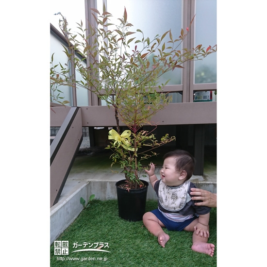 この度はプラントプランにご参加いただき、誠にありがとうございます。葉が大きく広がるナンテンは一株でも存在感があり、緑の少ない冬にも紅葉や赤い実が楽しめます。生長もとても早いので、しっかり剪定して形を整えてあげるとナンテンらしい美しさが楽しめますよ。 記念樹とともにお子さまが健やかにご成長されますことを、従業員一同心よりお祈り申し上げます。