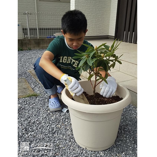 この度はプラントプランにご参加いただき、誠にありがとうございます。お子さまの笑顔がとっても素敵なお写真をお送りくださいました。記念樹には、西洋シャクナゲをお選びいただき、大切にしながら植樹してくれましたね!お届けした樹木にはすでに大きな蕾がつき、冬の開花時期に向けて準備中ですね。1本でも存在感抜群の西洋シャクナゲは、寂しくなりがちな冬のお庭を可愛らしい雰囲気で彩り、明るくしてくれますよ。記念樹とともにお子さまが健やかにご成長されますことを、従業員一同心よりお祈り申し上げます。