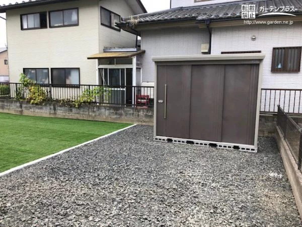 物置まわりは砂利を敷設