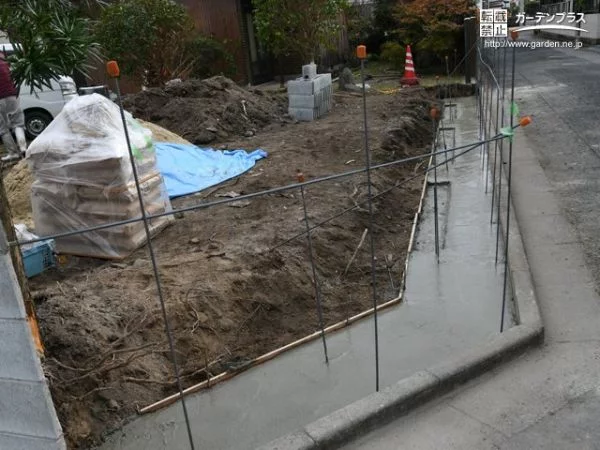 8段のブロックを積んだ塀ですので、控え壁も基準に沿って施工。ブロックの基礎も控え壁の長さ分コンクリートを打ち、鉄筋を入れています。