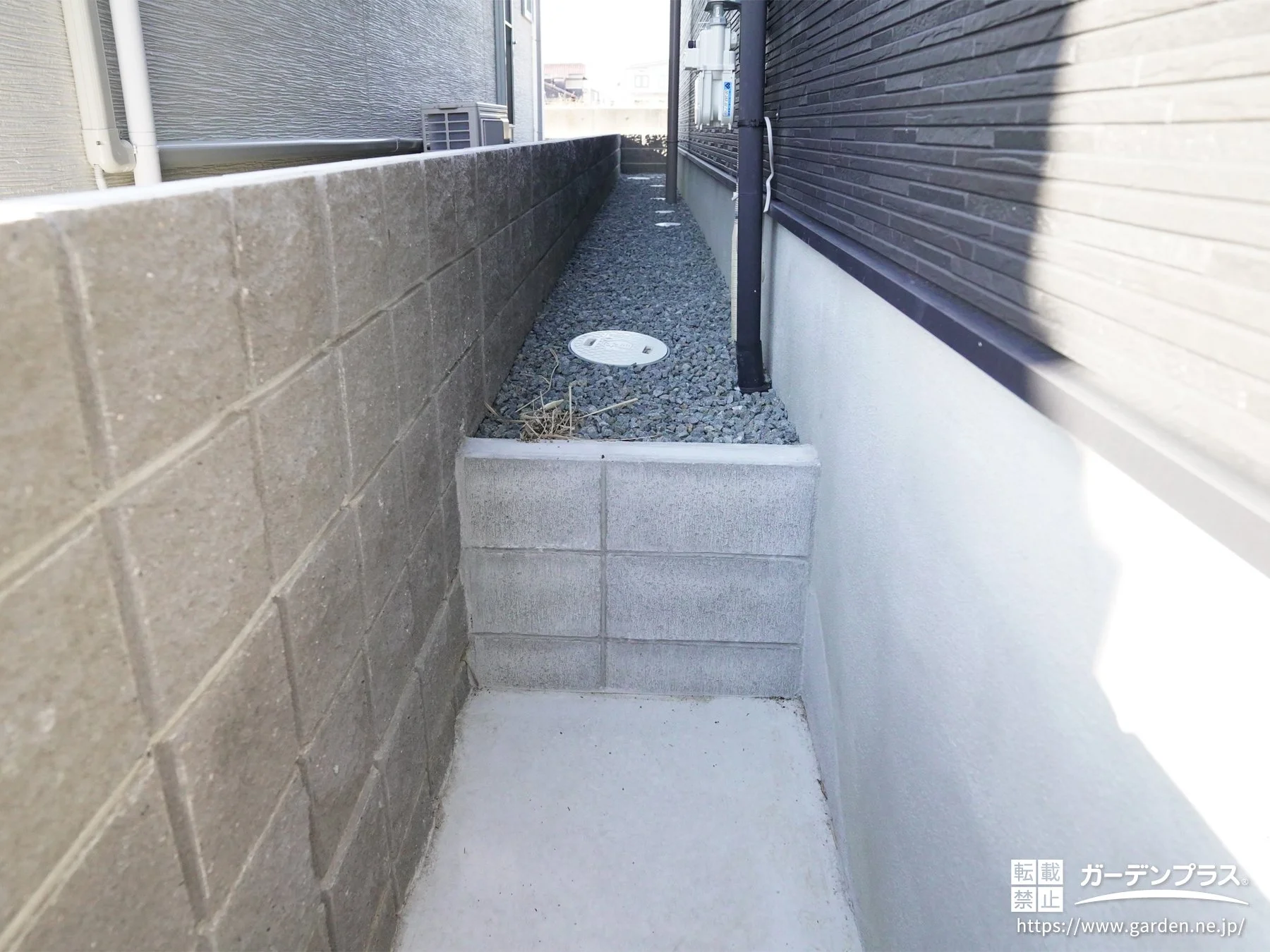 水受け:土間コンクリート + 化粧砂利 + 目皿