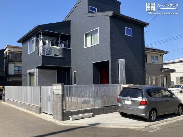 新築のお住まいの外構工事をご依頼いただきました。わんちゃんと遊べるお庭にしたいとのことで、アプローチやお庭まわりを目隠しフェンスや門扉で囲ってクローズに。繊細な縦格子のホワイトフェンスは高さがあっても爽やかな印象です。またお庭は天然芝を張り、爽やかな香りとふかふかの踏み心地をお楽しみいただけます。その他、化粧ブロックを積んだブロック門柱の造作、駐車スペースの舗装や北側接道部のメッシュフェンス設置など、安心して新生活を送っていただけるようお庭環境を整えました。