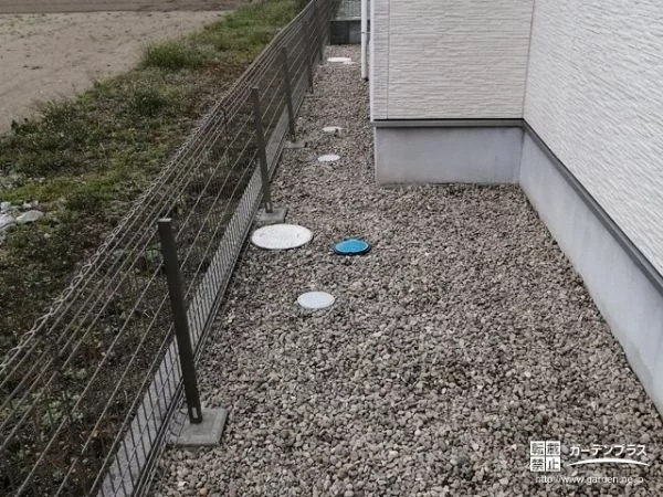 建物まわりや犬走りに、防草シートと砂利を敷設しました。以前は土のままでしたので、雨で水たまりやぬかるみができてしまっていましたが、砂利を敷くことで排水性もアップ。雑草も防ぎ、すっきりした状態を保つことができます。