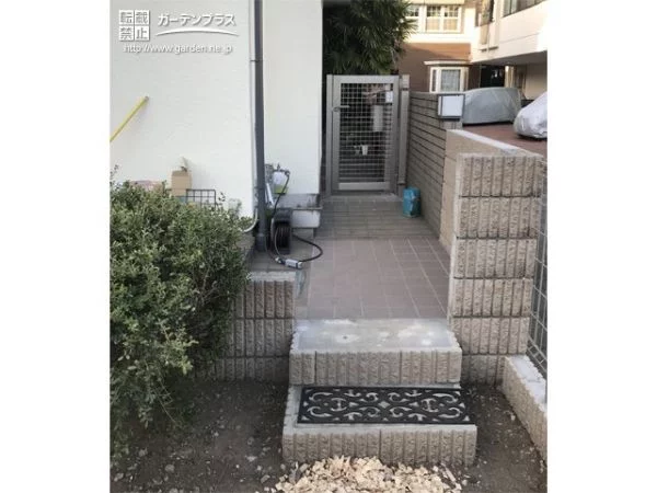 園路一部:土間コンクリート + タイル貼り LIXIL アレス 150角
