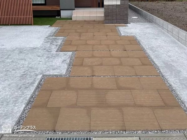 あたたかみを感じさせるアプローチが引き立つ新築外構