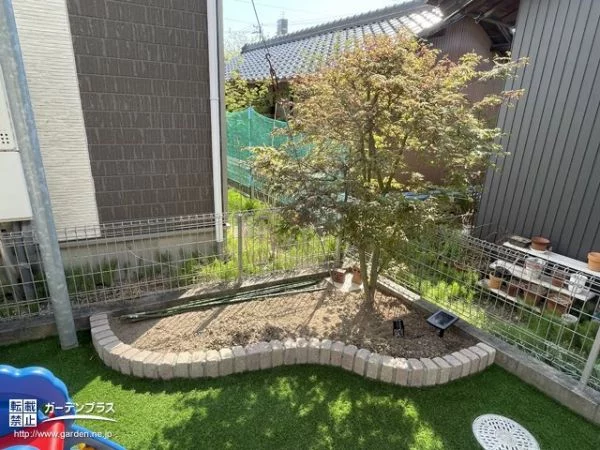 既存の庭は、天然芝で下から雑草が生えており、タイルは砂や石が乗ってヒビ割れた状態でした。上の子どもが小学生になったので、『広々とした綺麗な空間を活用したい』と思ったのが、依頼したきっかけでした。