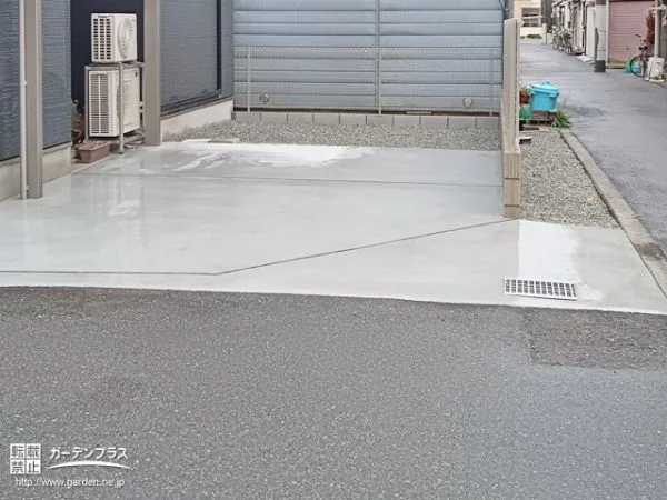 お住まいに隣接した未整地の土地を購入したため、駐車スペース兼お庭として利用したいというお客様がらのご依頼をいただきました。駐車スペースに土間コンクリートを打設し、片流れタイプのカーポートを設置しました。もともとお車を駐車できるスペースがありましたがもう1台快適に停められるようになり、来客時の駐車スペースとしても利用できます。また主庭は砂利を敷設。駐車スペースからお庭にかけての接道部には目隠しフェンスを設けました。外からは生活感を感じさせず、清潔に駐車スペースを使っていただける空間が完成しました。