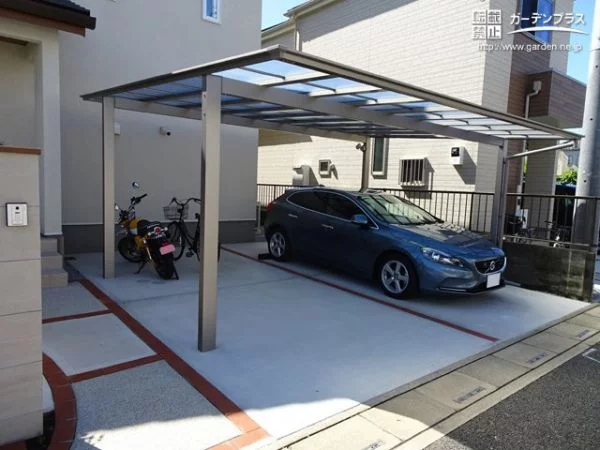 レンガラインを効果的に使った駐車スペースとアプローチ