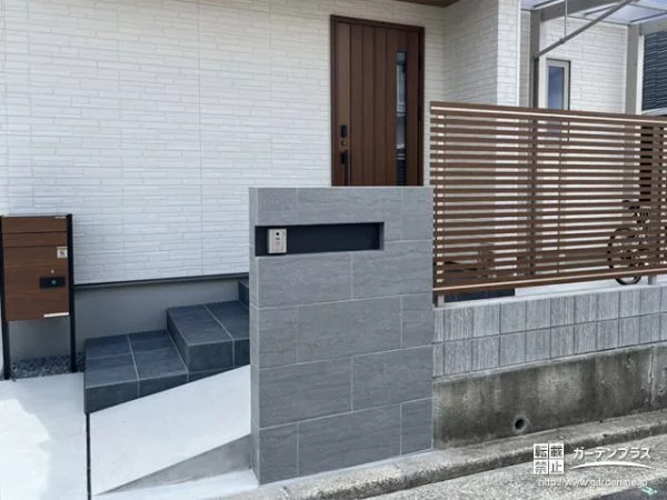 玄関正面目隠しフェンス:YKKAP ルシアスフェンスH09型 キャラメルチーク+プラチナステン