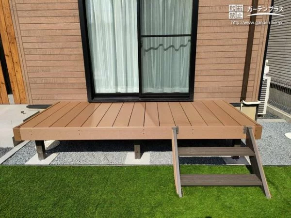 ウッドデッキ:旭興進 れい樹 モカ + ステップ標準H600mm + 正面幕板取付金具