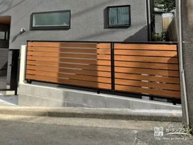 自然の温かみをプラスする木目調×ブラックの目隠しフェンス