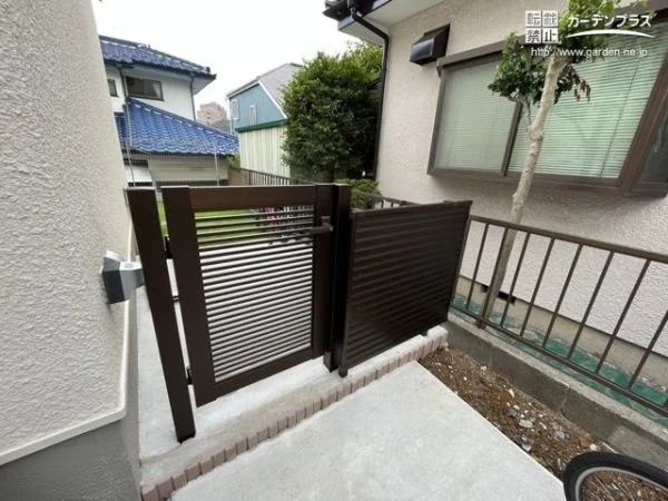 主庭門扉:YKKAP シンプレオ門扉1型 横格子 片開き 門柱使用 ブラウン
