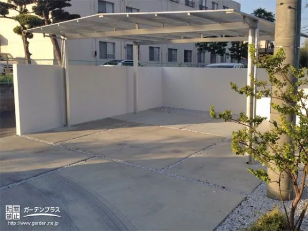 白基調の塀がシンプルな建物とわせてまとまりのある仕上がりになりました。
