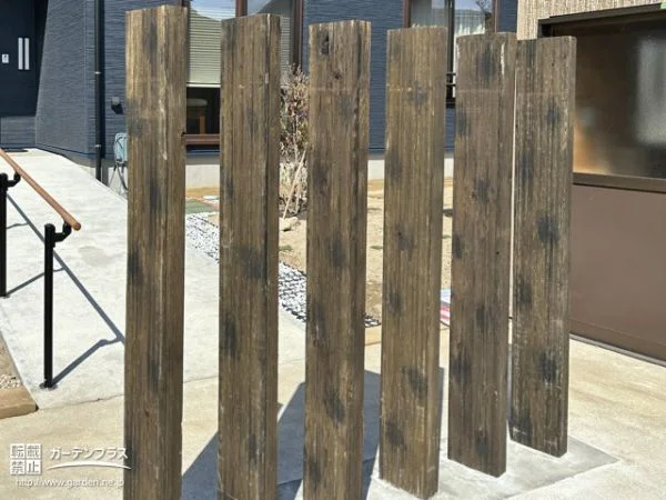 自然素材特有の経年変化を楽しめるスリットフェンス