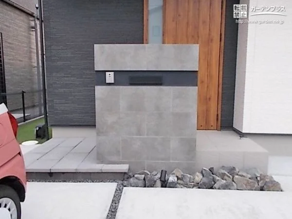 門柱:ブロックベース + コンクリートブロック + タイル貼り タカショー セラレバンテ
