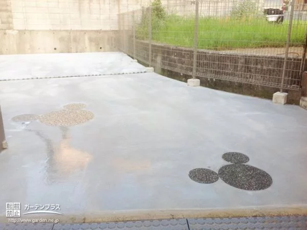 初回打ち合わせの際は予算内に収まるように色々と提案頂き、また一度では決められず再来訪してもらい、パースやカタログで丁寧な説明やアイディアを頂きました。担当の方の初回からの対応がとても良かったので、施工も安心して任せることができ、大変満足しております。尚、使用不要のマンホール部分がミッキーのデザインとして溶け込んでいるカースペースは孫達にも大変好評です。