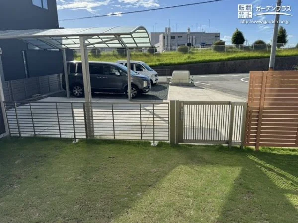お庭をフェンスで囲いたいとお客様からリフォーム工事をご依頼いただきました。駐車スペースに隣接するお庭でしたので、小さなお子様が飛び出してしまわないよう、周りにフェンスを設置。目隠しフェンスと境界フェンスを組み合わせ、クローズ化しました。門扉を2つ設置したことで、正面玄関側と駐車スペース側のどちらからでも快適に行き来できる動線が確保されています。ご家族で安心して過ごせるお庭になりました。