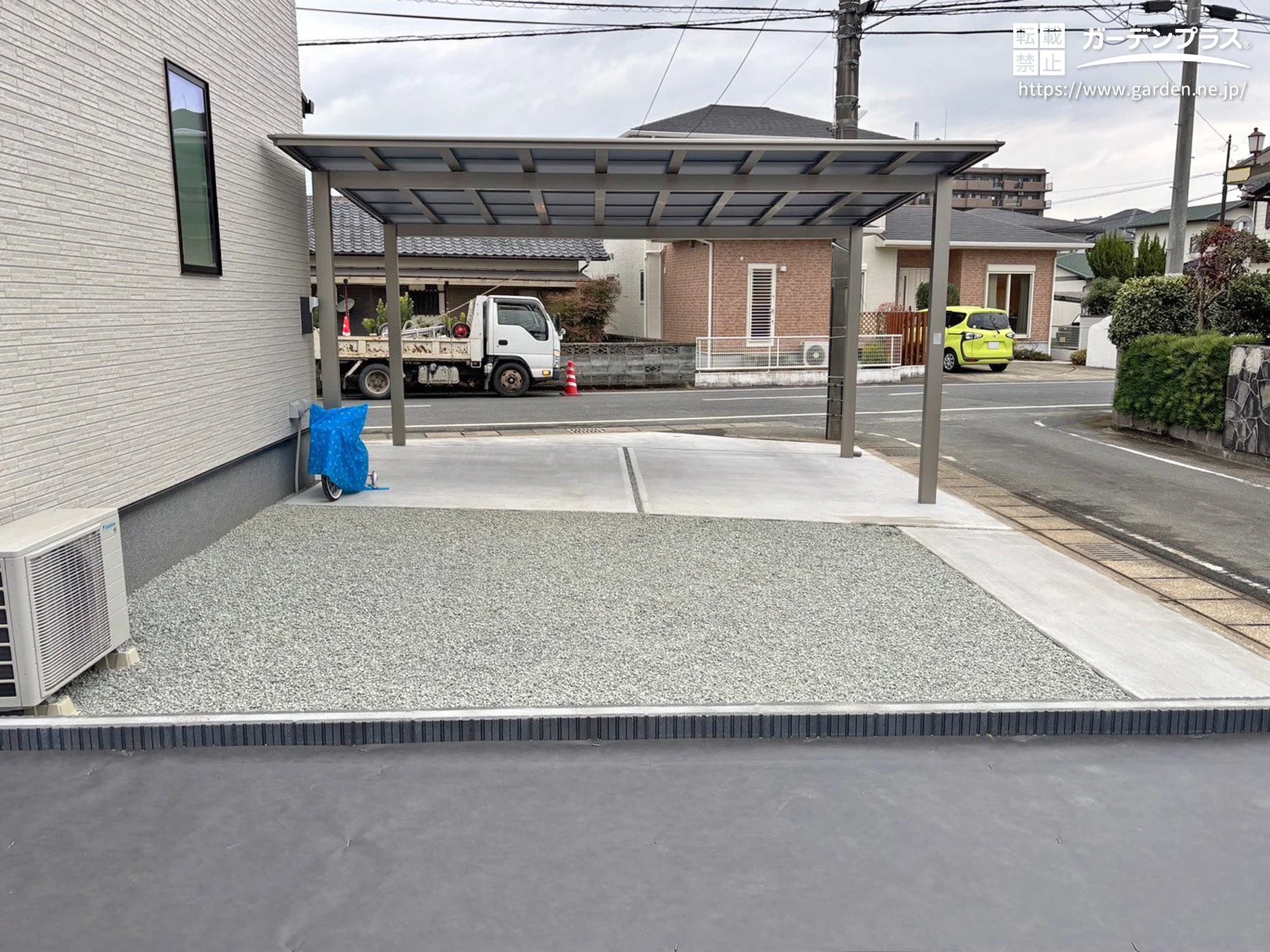 カーポート:Value Select ソリッドポート ワイド 積雪~20cm対応 シャイングレー/ロング柱仕様 + 熱線吸収ポリカーボネート屋根 ブルーマット
