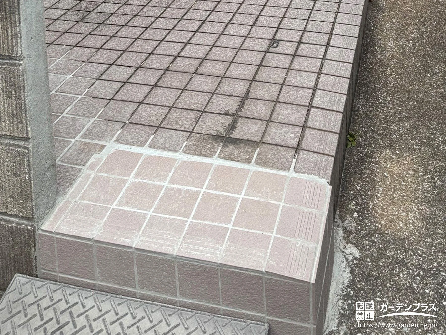 玄関ポーチの経年劣化していた部分に新しくタイルを貼って補修しました。