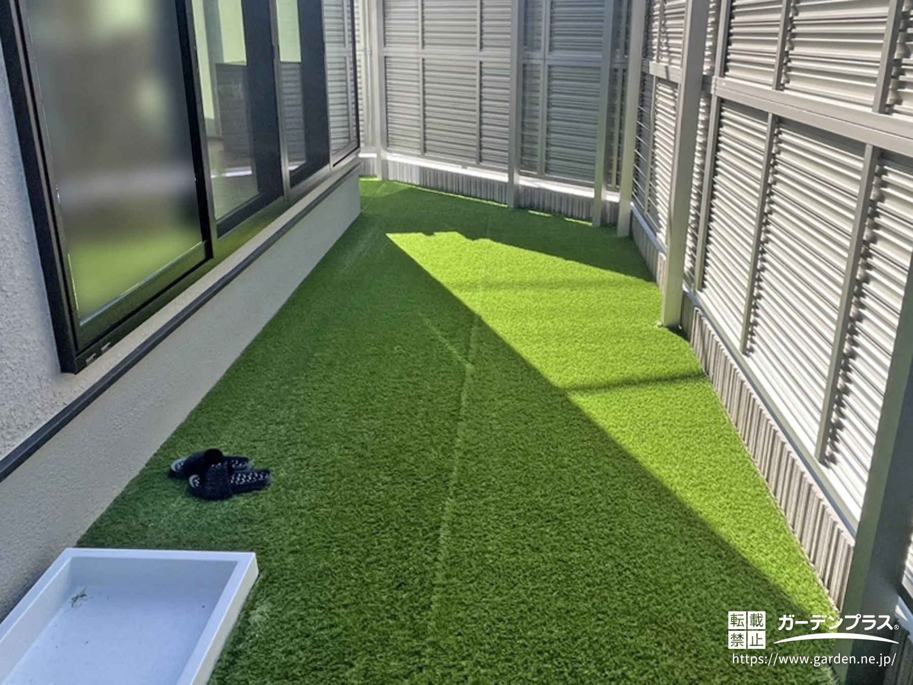 主庭:防草シート + 人工芝