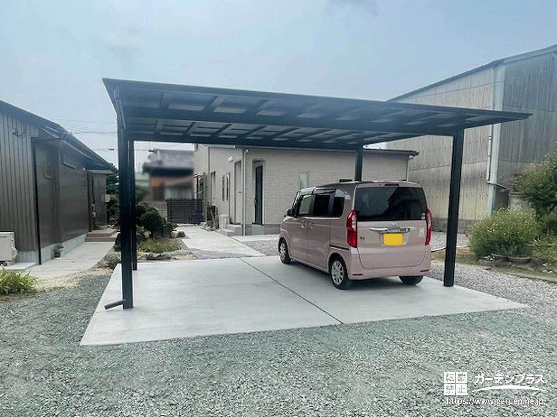 カーポート:LIXIL ネスカF (フラットスタイル) ワイド 積雪~20cm対応 ブラック/ロング柱25仕様 + ブラックポリカーボネート屋根
