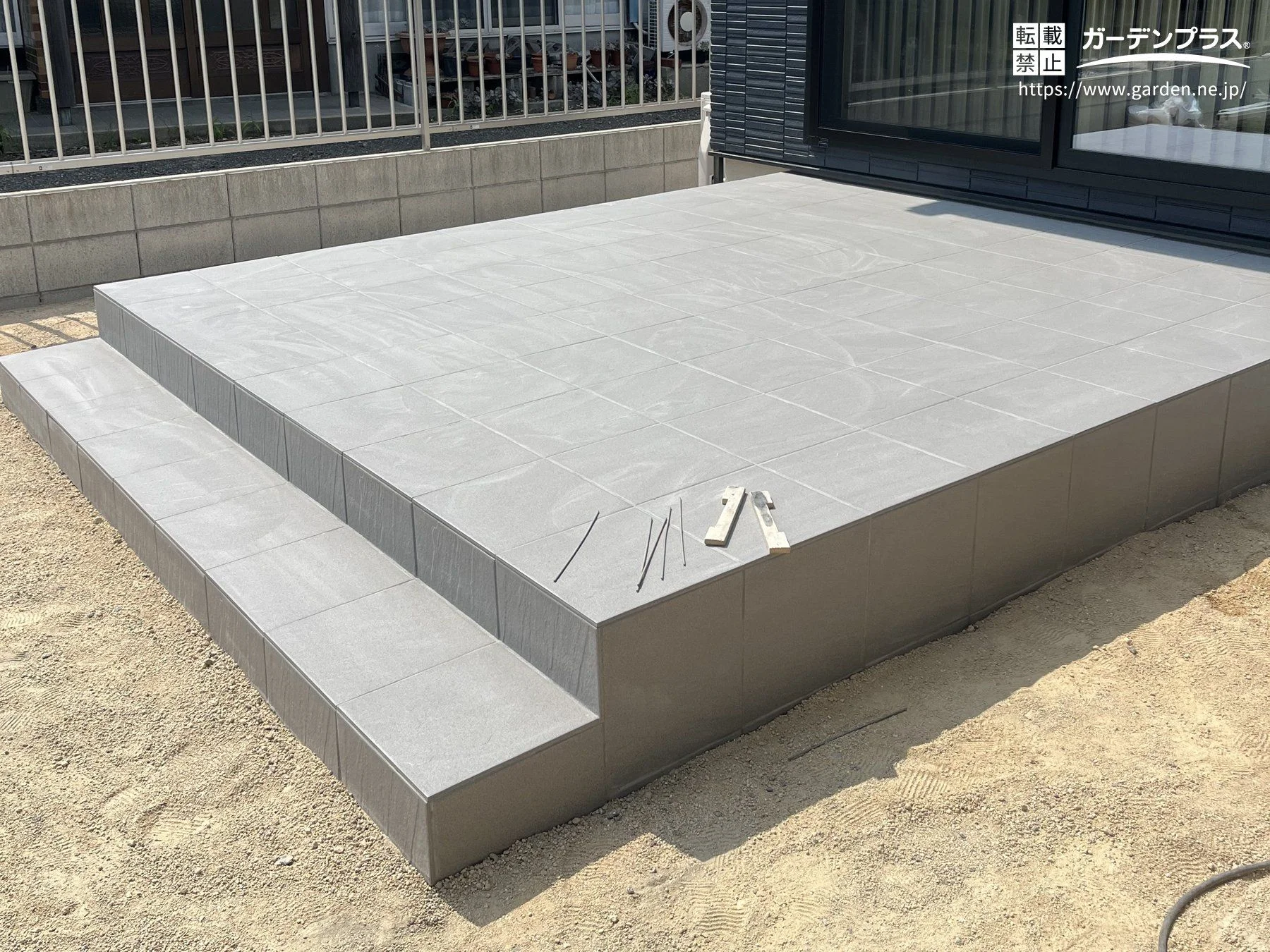 タイルデッキ:下地コンクリートブロック + タイル張り